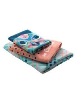 Serviette personnalisable en sublimation sur une face et fourreau. Goodies Made in Europe. Le tarif "à partir de" est valable pour des quantités supérieures à 5000 pièces. Minimum de commande : 40 pièces