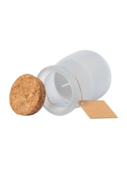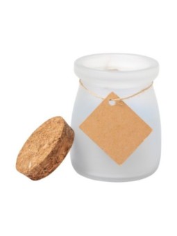Bougie publicitaire dans un pot en verre avec bouchon en liège. Le tarif "à partir de" est valable pour des quantités supérieures à 5000 pièces. Minimum de commande : 50 pièces