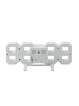 Réveil publicitaire mural digital à LED avec un adaptateur secteur. Le tarif "à partir de" est valable pour des quantités supérieures à 5000 pièces. Minimum de commande : 50 pièces