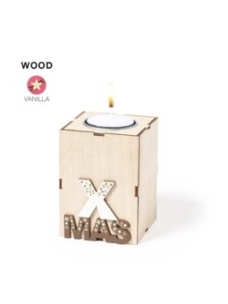 Bougie de Noël publicitaire en bois parfumée à la vanille, une décoration idéale pour les fêtes de fin d'année. Le tarif "à partir de" est valable pour des quantités supérieures à 5000 pièces. Minimum de commandes : 250 pièces