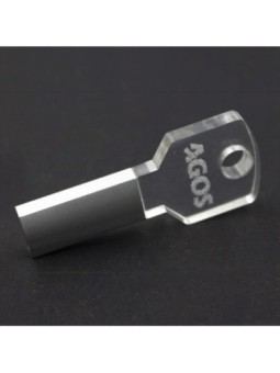 Clé USB publicitaire en forme de clé transparente.  Le tarif "à partir de" est valable pour des quantités supérieures à 5000 pièces.  Minimum de commande : 250 pièces
