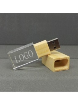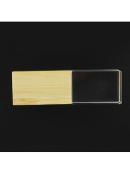 Clé USB publicitaire transparente avec bouchon en bois.  Le tarif "à partir de" est valable pour des quantités supérieures à 5000 pièces.  Minimum de commande : 250 pièces