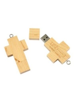 Clé USB promotionnelle en bois en forme de croix, personnalisée en différentes capacités. Minimum de commande : 250 pièces.