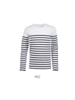 T shirt personnalisé pour enfant façon marinière. T shirt manches longues promotionnel disponible en 2 coloris. Le tarif "à partir de" est valable pour des quantités supérieures à 5000 pièces. Minimum de commande : 25 pièces.