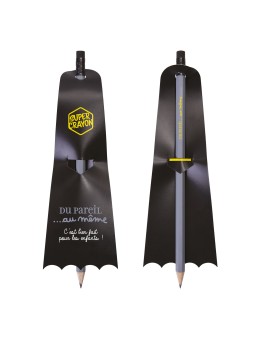 Crayon original superhéros Le tarif "à partir de" des crayons de papier Made in France est valable pour des quantités supérieures à 1000 pièces. Le minimum de commande possible pour ces crayons personnalisés est de 250 pièces. Caractéristiques clés : Dimensions cape : 60 x 166 mm Dimensions...