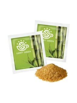 Sucre brun publicitaire, Vegan et sous forme de sachet ! Le tarif "à partir de" est valable pour des quantités supérieures à 5000 pièces. Caractéristiques clés : Dimensions : 60 x 55 mm Poids : 4 g Conservation : illimitée