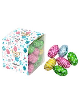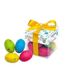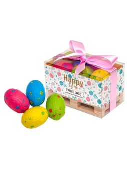 Œufs de Pâques, fabriqué en Europe pour une image éthique !  Le tarif "à partir de" des chocolats personnalisables est valable pour des quantités supérieures à 1000 pièces. Le minimum de commande possible pour ce set de Pâques personnalisé est de 250 pièces. Caractéristiques clés : Matières :...