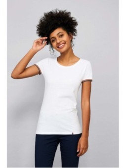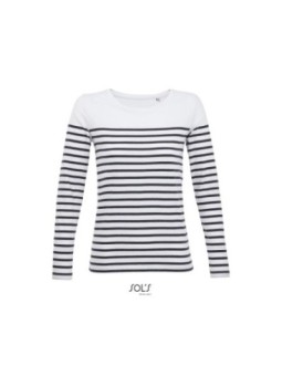 T-shirt personnalisé rayé pour femmes. Ce t-shirt publicitaire marinière est disponible à manches longues. Existe aussi en modèle hommes. Le tarif "à partir de" est valable pour des quantités supérieures à 5000 pièces. Minimum de commande : 50 pièces