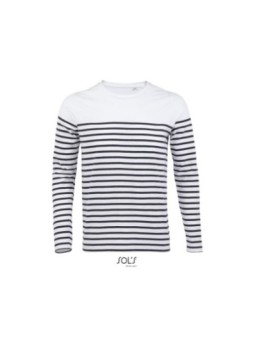 T shirt pour hommes personnalisé rayé à chamches longues façon marinière. Existe aussien version femmes. Le tarif "à partir de" est valable pour des quantités supérieures à 5000 pièces. Minimum de commande : 50 pièces