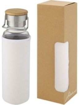 Bouteille promotionnelle en verre de capacité 660 ml avec manchon en néoprène. Le tarif "à partir de" est valable pour des quantités supérieures à 5000 pièces. Minimum de commande : 50 pièces.