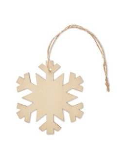 Décoration de Noël publicitaire en forme de flocon de neige en bois. Le bois est un est un produit naturel, il peut y avoir de légères variations de couleur et de taille par article, pouvant altérer le résultat final. Le tarif "à partir de" est valable pour des quantités supérieures à 5000...