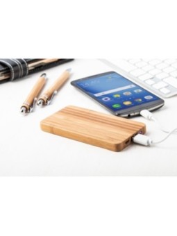 Batterie publicitaire en bambou personnalisable. Batterie fait à partir de matériaux naturels pour favoriser le developpement durable. Le tarif "à partir de" est valable pour des quantités supérieures à 5000 pièces. Minimum de commande : 50 pièces