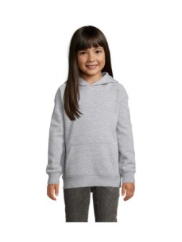 Sweat-shirt promotionnel pour enfant avec capuche, fabriqué en coton biologique et en polyester recyclé. Le tarif "à partir de" est valable pour des quantités supérieures à 5000 pièces. Minimum de commande : 50 pièces.