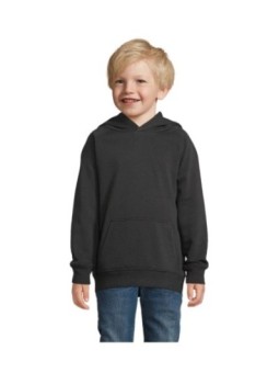 Sweat-shirt promotionnel pour enfant avec capuche, fabriqué en coton biologique et en polyester recyclé. Le tarif "à partir de" est valable pour des quantités supérieures à 5000 pièces. Minimum de commande : 50 pièces.