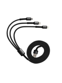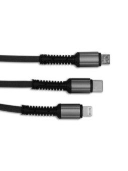 Câble USB 3 en 1 avec des embouts micro USB, Lightening et type C. Le tarif "à partir de" est valable pour des quantités supérieures à 5000 pièces. Minimum de commande : 25 pièces