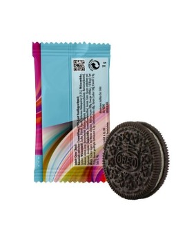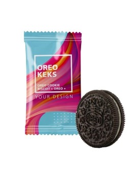 Biscuit Oreo publicitaire Made In Europe et Vegan ! Minimum de commande pour le biscuit Oreo personnalisé est de 1000 pièces. Caractéristiques clés : Dimensions : 90 x 50 mm Contenu : 1 biscuit Poids : 11 g Conservation : 6 moi