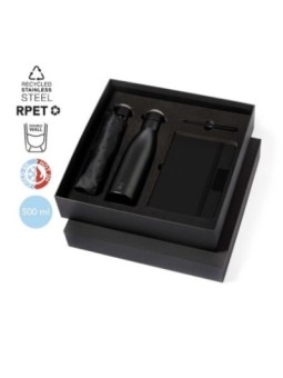 Box cadeaux publicitaires élégante toute noire ! Le tarif "à partir de" est valable pour des quantités supérieures à 5000 pièces. Minimum de commande : 15 pièces  Caractéristiques clés : Poids : 1530 g Matière : Pongee RPET / Fibre de Verre / Acier Inox / Polyester 300 D RPET Dimension : 35,4 x...