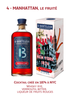 Cocktail "le Barteleur" Made In France, dégustez à la maison où à vos rendez-vous pro d'excellents cocktails dignes des meilleurs barmans ! Le tarif "à partir de" du cocktail "le Barteleur" est valable pour des quantités supérieures à 5000 pièces. Le minimum de commande possible pour ce cocktail...