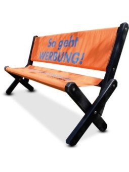 Banc publicitaire Made in Europe idéal pour les espaces publics ! Le tarif "à partir de" du banc personnalisable  est valable pour des quantités supérieures à 100 pièces. Caractéristiques clés : Matière : Bois de Hêtre robuste et tissu Dimensions : 180 x 92 x 37cm 2-3 personnes / 190 gr