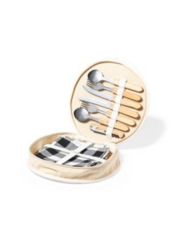 Panier pique-nique publicitaire idéal pour quatre personnes ! Le tarif "à partir de" du panier pique-nique publicitaire est valable pour des quantités supérieures à 5000 pièces. Le minimum de commande possible pour ce dé est de 5 pièces. Caractéristiques clés : Matière : Osier / Acier inoxydable...
