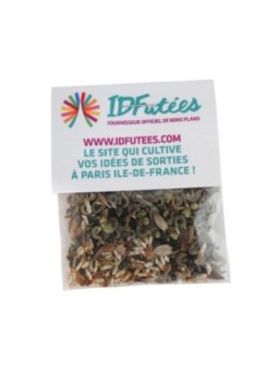 Sachet de graines publicitaire à distribuer à vos clients et prospects. Sachet de graines personnalisable avec votre logo ! Le tarif "à partir de" est valable pour des quantités supérieures à 5000 pièces. Minimum de commande : 235 pièces.