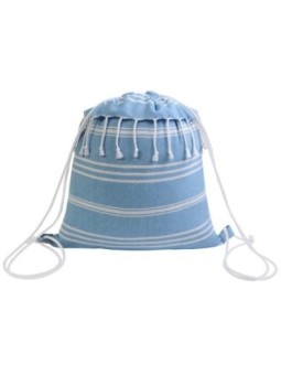 Sac à dos effet fouta publicitaire pour donner de l'originalité à votre communication.  Le tarif "à partir de" du sac à dos effet fouta publicitaire est valable pour des quantités supérieures à 5000 pièces. Le minimum de commande possible pour ce sac à dos est de 240 pièces. Caractéristiques clés...