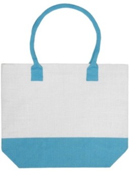 Sac shopping jute bicolore publicitaire respectueux de l'environnement. Le tarif "à partir de" de sac shopping jute bicolore personnalisé est valable pour des quantités supérieures à 1000 pièces.  Le minimum de commande possible pour ce sac shopping jute bicolore personnalisable est de 750...
