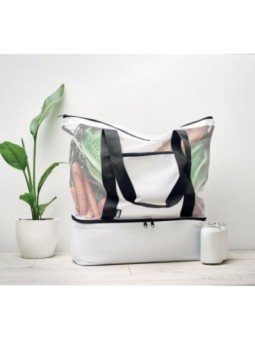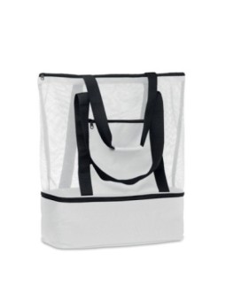 Sac shopping publicitaire ou sac de plage à anses longues en RPET 600D avec compartiment isotherme.  Le tarif "à partir de" est valable pour des quantités supérieures à 5000 pièces.  Minimum de commande : 50 pièces Caractéristiques clés :  Dimensions : 52 x 16 x 49 cm Matières : RPET 600D avec...