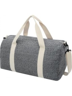 Sac de voyage publicitaire en polyester et coton recyclé ! Le tarif "à partir de" est valable pour des quantités supérieures à 5000 pièces. Minimum de commande : 50 pièces. Caractéristiques clés : Poids : 410 g. Grammage : 450 g/m2. Matière : Coton recyclé. Dimensions : 26 x 49 x 24 cm. Green