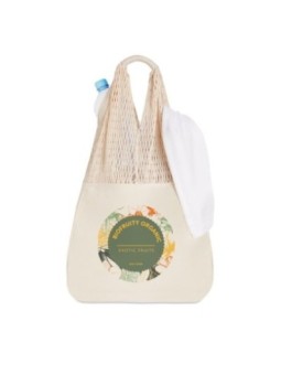 Sac de plage publicitaire en coton et filet avec de longues poignées. Produit selon les normes OEKO-TEX. Le tarif "à partir de" est valable pour des quantités supérieures à 5000 pièces.  Minimum de commande : 50 pièces Caractéristiques clés : Dimensions : 38 x 14 x 50 cm Matière : Cotton Poids :...