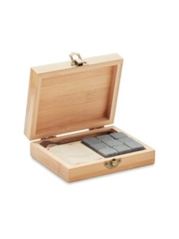 Set whisky personnalisé composé de 9 pierres réutilisables dans une boîte bambou, une pochette coton et des pinces. Le tarif "à partir de" est valable pour des quantités supérieures à 5000 pièces. Minimum de commande : 50 pièces