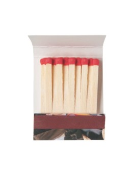 Mini pochette de 20 allumettes publicitaire avec 4 couleurs de mèches au choix. Allumettes détachables avec impression sur la pochette en quadri.