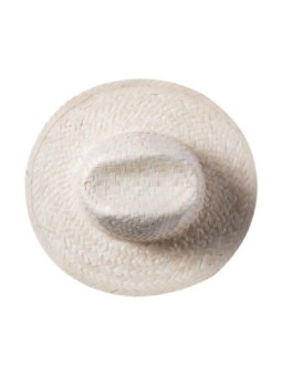 Chapeau de paille à personnaliser sur un bandeau vendu séparément. Le tarif "à partir de" est valable pour des quantités supérieures à 5000 pièces. Minimum de commande : 100 pièces