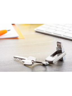 Clé USB publicitaire métallique avec attache pour porte-clés. Le tarif "à partir de" de la clé USB promotionnelle pivotante est valable pour des quantités supérieures à 5000 pièces. Le minimum de commande possible pour cette clé USB promotionnelle personnalisée avec embout pour trousseau est...