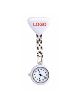 Montre infirmière publicitaire avec une chaine en métal à personnaliser en tampographie. Le tarif "à partir de" est valable pour des quantités supérieures à 5000 pièces. Minimum de commande : 100 pièces.