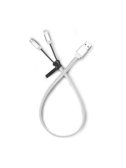 Câble publicitaire 2 en 1 zippé pour Iphone et micro USB avec option type C à partir de 1000 pièces. Câble original et utile à garder toujours dans son sac. Minimum de commande : 100 pièces