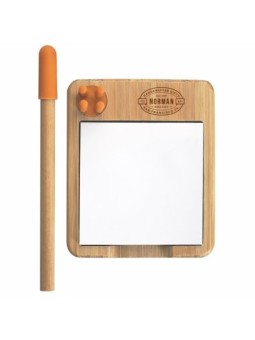 Set papeterie publicitaire comprenant un stylo, un porte-bloc aimanté avec papier et 6 trombones. Produit bio utlise au travail comme à la maison. Minimum de commande : 100 pièces