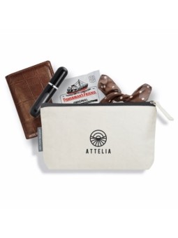 Trousse de voyage ou de maquillage publicitaire avec fermeture par zip contrasté ! Le tarif "à partir de" est valable pour des quantités supérieures à 5000 pièces. Minimum de commande : 200 pièces Caractéristiques clés : Matières : 100% coton biologique - 280gr/m² Dimensions : 22,5 x 13 x 3,5 cm...