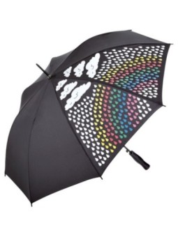 Parapluie personnalisé automatique avec apparition de l'impression coloré au contact de l'eau. Idéal si vous souhaitez un produit original, qui pourra se démarquer facilement ! Le tarif "à partir de" est valable pour des quantités supérieures à 5000 pièces. Minimum de commande :  50 pièces...