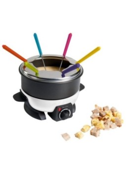 Fondue électrique pulicitaire pour 6 personnes, livrée avec fourchettes à fondue colorées. Le tarif "à partir de" est valable pour des quantités supérieures à 5000 pièces. Minimum de commande : 10 pièces