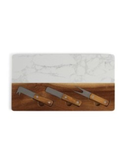 Plateau à fromage publicitaire en acier inoxydable et bois avec 3 ustensiles à fromage. Le tarif "à partir de" est valable pour des quantités supérieures à 5000 pièces. Minimum de commande : 25 pièces