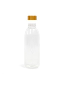 Gourde publicitaire en verre. Bouteille en verre avec un bouchon en bois et intérieur inox.  Le tarif "à partir de" est valable pour des quantités supérieures à 5000 pièces.  Minimum de commande : 50 pièces