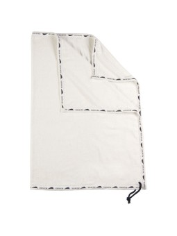 Drap de plage publicitaire ou serviette personnalisée avec un liseré marqué Pen Duick. Le tarif "à partir de" est valable pour des quantités supérieures à 5000 pièces. Minimum de commande : 25 pièces.