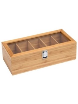Boite à thé personnalisée avec 5 compartiments séparés pour vos sachets de thé, avec couvercle en verre. Idéal pour les amateurs de boissons chaudes. Minimum de commande : 25 pièces