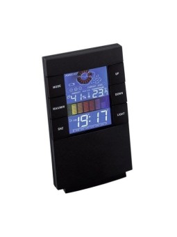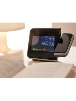 Horloge de bureau publicitaire avec projection de l'heure en rouge. Affichage en couleur et différentes fonctions disponibles. Le tarif "à partir de" est valable pour des quantités supérieures à 5000 pièces. Minimum de commande : 50 pièces.