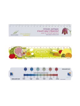 Règle publicitaire double décimètre souple. Très grande surface d'impression : 21 x 4 cm ! Le tarif comprend une impression recto. Le tarif "à partir de" est valable pour des quantités supérieures à 1000 pièces. Minimum de commande : 150 pièces Caractéristiques clés :  Dimensions :  21 x 4 cm...