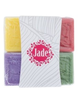 Set de savon publicitaire 30g aux senteurs citron, olive, lavande et fruits rouges. Existe aussi en version savon 30g et savon 100g. Pas de vente sans marquage. Le tarif comprend l'impression en copie laser.  Le tarif "à partir de" est valable pour des quantités supérieures à 5000 pièces....