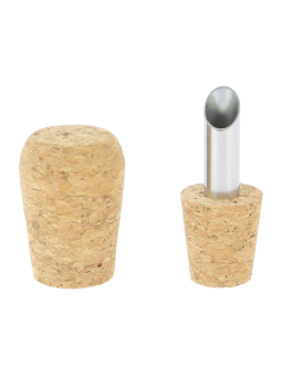 Bouchon à vin avec un bec verseur ! Le tarif "à partir de" est valable pour des quantités supérieures à 1000 pièces. Le minimum de commande possible pour les becs verseurs est de 250 pièces. Caractéristiques clés : Matières : Liège/métal Dimensions :ø2,8/1,8 x 6,4 cm Made in France