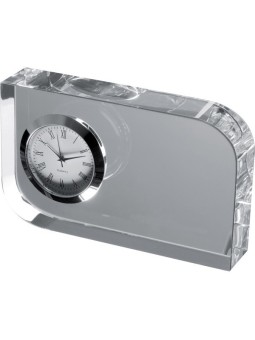Horloge de bureau décorative publicitaire en verre avec 1 pile incluse. Le tarif "à partir de" est valable pour des quantités supérieures à 5000 pièces. Minimum de commande : 100 pièces