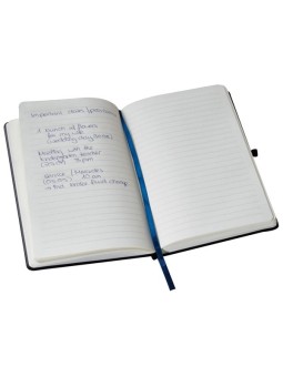 Carnet de notes publicitaire avec fermeture élastique. Le tarif "à partir de" du carnet de notes personnalisable est valable pour des quantités supérieures à 1000 pièces. Le minimum de commande possible pour ce carnet de notes avec impression de votre logo est de 150 pièces. Caractéristiques clés...